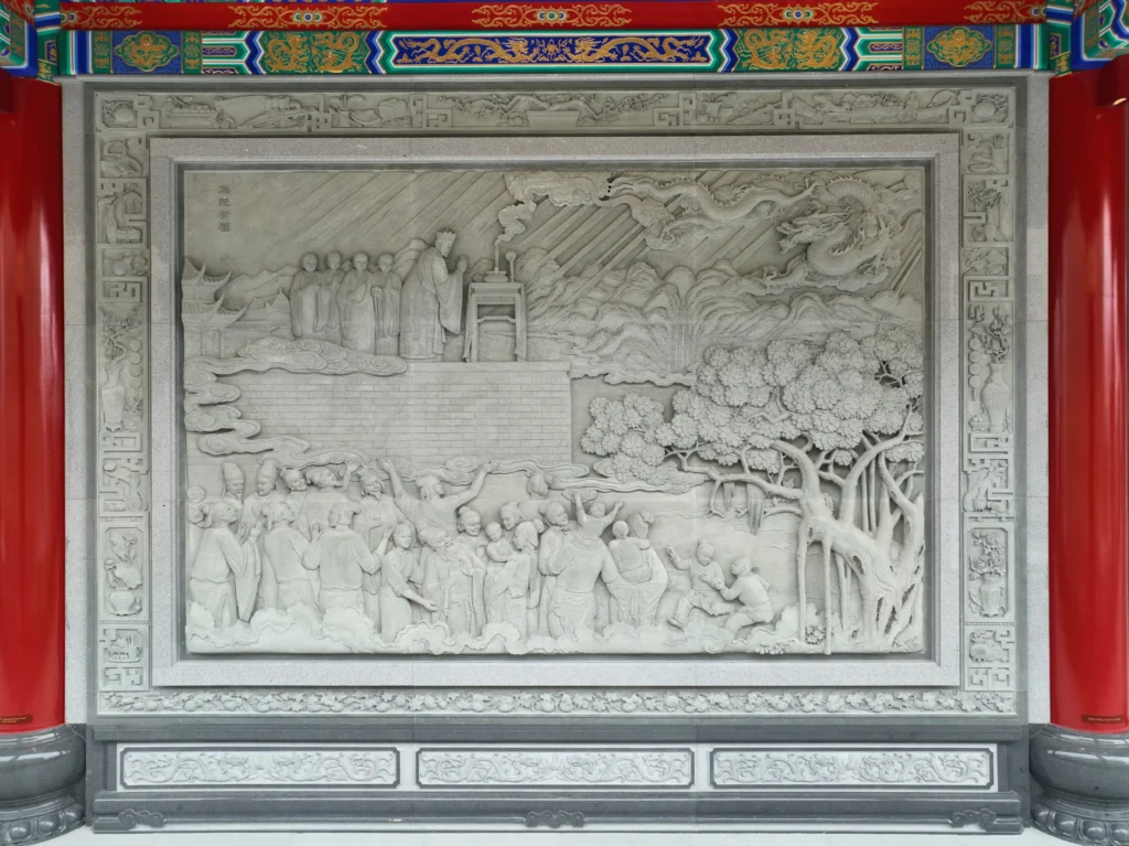 ภาพนี้สื่อถึงพลังแห่งศรัทธาและเมตตาธรรมที่สามารถช่วยบรรเทาความทุกข์ยากของผู้คนได้ แท่นบูชาและเครื่องสักการะในภาพเป็นสัญลักษณ์ของการเชื่อมโยงระหว่างโลกมนุษย์กับสิ่งศักดิ์สิทธิ์ ภาพคนจำนวนมากที่มารวมตัวกันแสดงถึงพลังของความสามัคคีในการเผชิญความยากลำบาก การที่หลวงปู่ไต้ฮงยืนอยู่ท่ามกลางประชาชนสื่อถึงการเป็นที่พึ่งทางจิตใจและเป็นศูนย์รวมศรัทธาของผู้คน