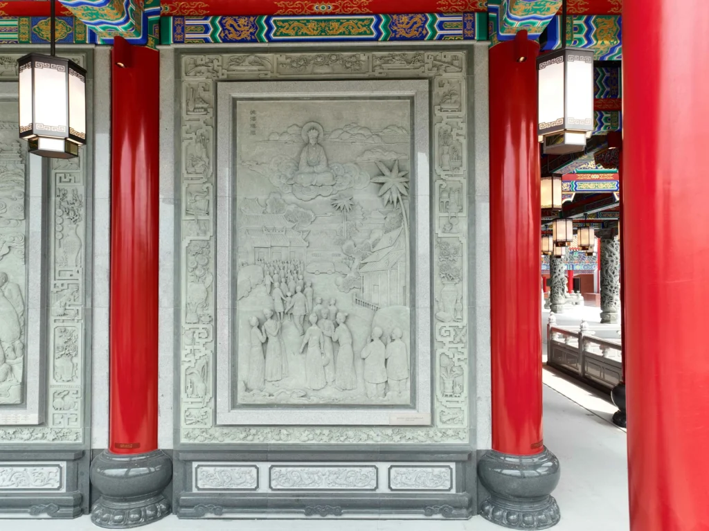 ภาพนี้แสดงให้เห็นการแพร่กระจายของคุณธรรมและปณิธานของหลวงปู่ไต้ฮงมาสู่ประเทศสยาม โดยมีภาพหลวงปู่ไต้ฮงในรูปลักษณ์ที่เป็นทิพย์ลอยอยู่เหนือเมฆ กำลังมองลงมายังแผ่นดินสยาม มีรูปต้นมะพร้าวและสถาปัตยกรรมไทยที่แสดงถึงดินแดนสยาม มีภาพชาวจีนโพ้นทะเลที่กำลังประกอบพิธีกรรมทางศาสนาและกิจกรรมการกุศลตามรอยหลวงปู่ เช่น การช่วยเหลือผู้ยากไร้ การจัดพิธีศพ และการสร้างศาลเจ้าเพื่อสืบทอดปณิธานของท่าน ภาพนี้แสดงถึงความกลมกลืนระหว่างวัฒนธรรมจีนและไทยที่หล่อหลอมเข้าด้วยกันผ่านคุณธรรมและความเมตตาที่เป็นสากล